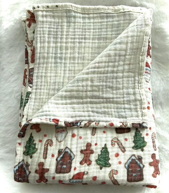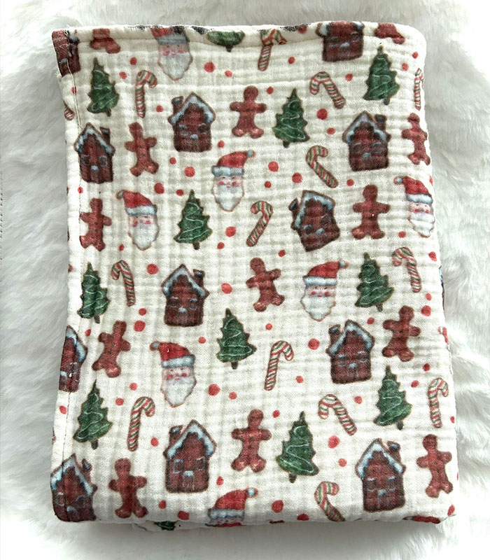 4 Katlı Müslin Bebek Battaniyesi – Yılbaşı Desenli