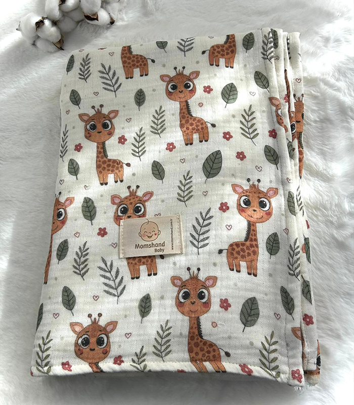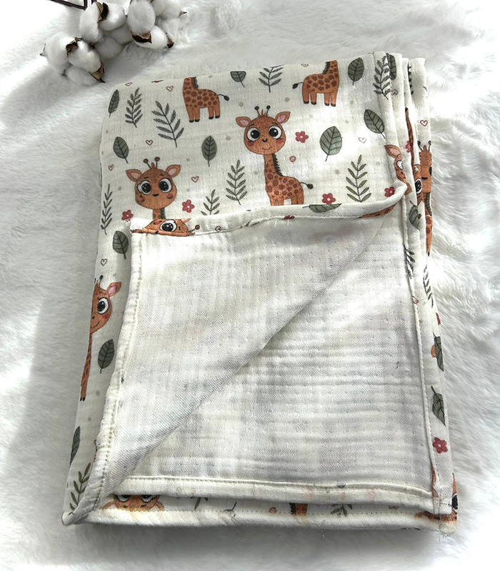 4 Katlı Müslin Bebek Battaniyesi – Zürafa Desenli