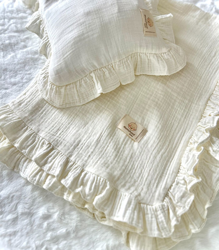 - Müslin bebek battaniyesi 80×100 cm ebat.; Müslin Yastık kılıfı 25×35 cm ebat.